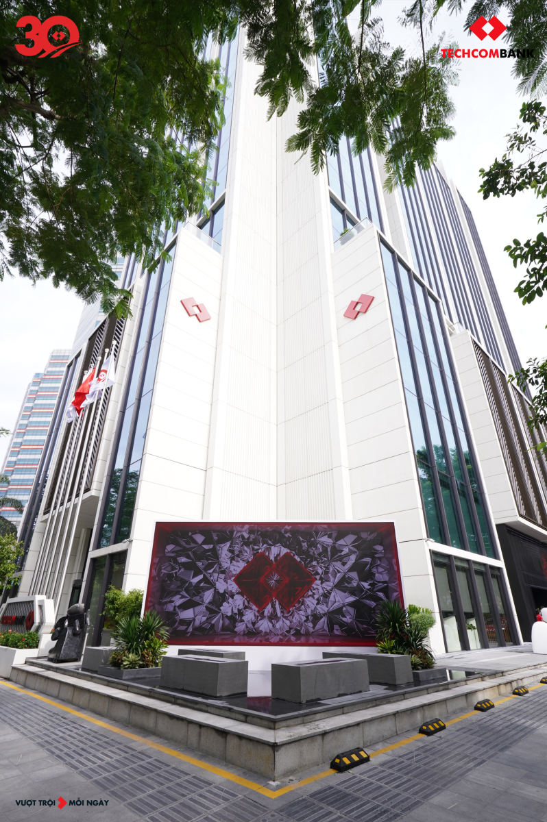 The Techcombank Head Office at 23 Le Duan, HCMC, features a design reflecting the city’s “dynamic and constant movement”. The building is designed as two stacked Rubik’s blocks, with glass windows across 20 storeys and a large internal atrium that ensures natural sunlight fills the building during the day. At night the building's interior lighting transforms Techcombank Le Duan into a sparkling crystal.