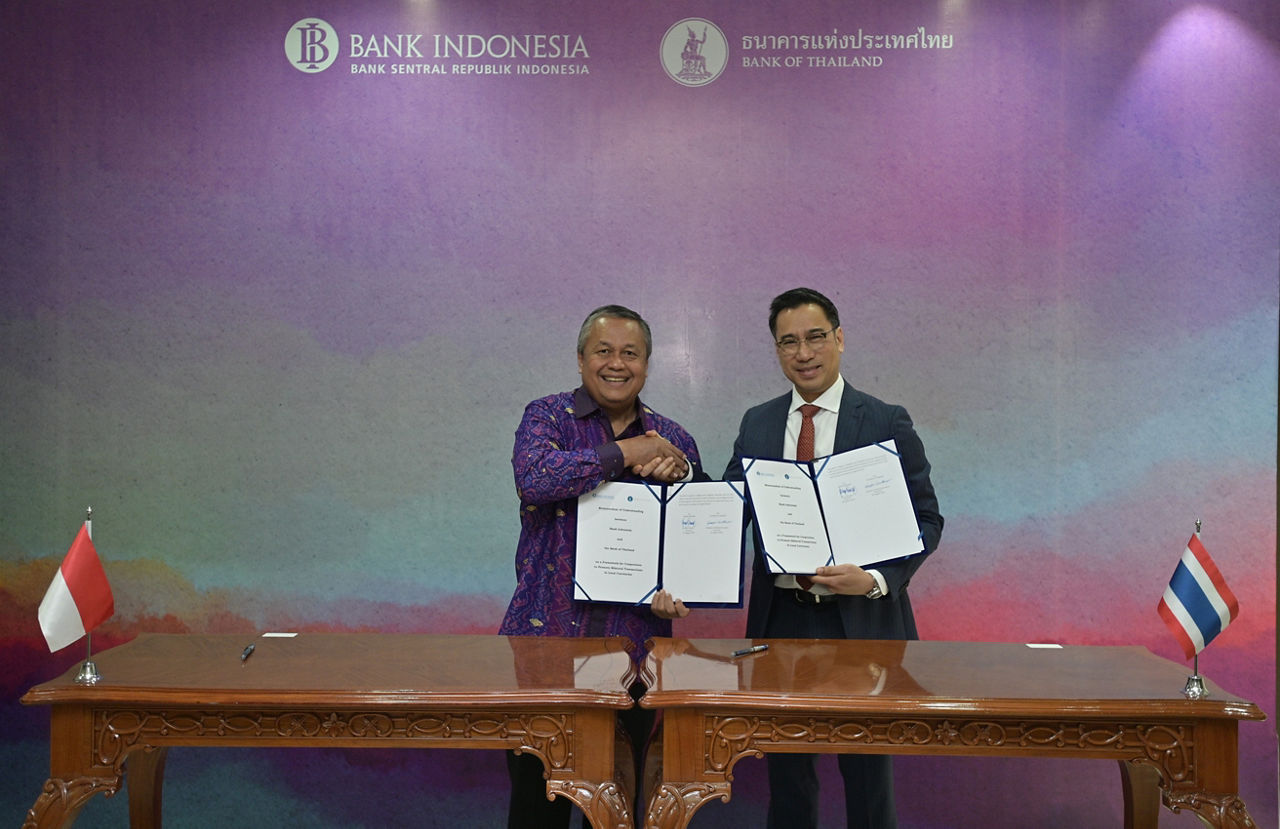 Bank Indonesia Governor Perry Warjiyo, Bank Negara Malaysia Governor Abdul Rasheed Ghaffour, and Bank of Thailand Governor Sethaput Suthiwartnarueput inked the memorandum of understandings (MoUs) at the sidelines of the ASEAN Finance Ministers and Central Bank Governors’ Meeting in Indonesia on 25 August.
