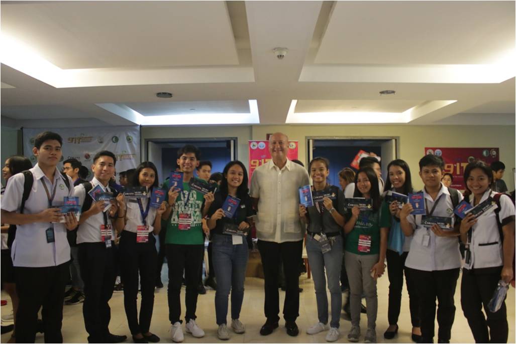 Cebuana Lhuillier Bank Vice Chairman and Cebuana Lhuillier president & CEO Jean Henri Lhuillier with students of University of Makati, during one of his talks promoting the “Iponaryo” mindset through Cebuana Lhuillier Micro Savings